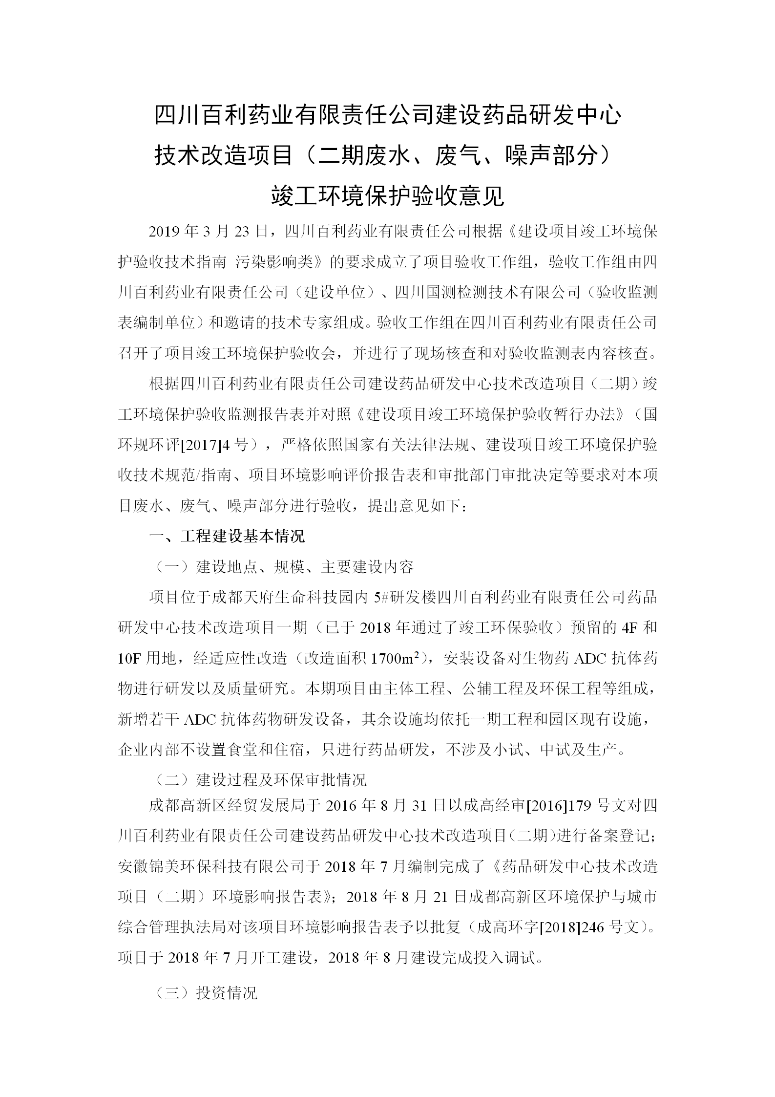 根据《国务院关于建设项目竣工环境保护管理条例的决定》以及环保部《建设项目竣工环境保护验收暂行办法》的公告(国环规环评[2017]4号)现将《四川开云体育平台官方网站-开云体育(中国)有限责任公司药品研发中心技术改造项目(二期)竣工环保验收监测报告》及验收意见公示如下: